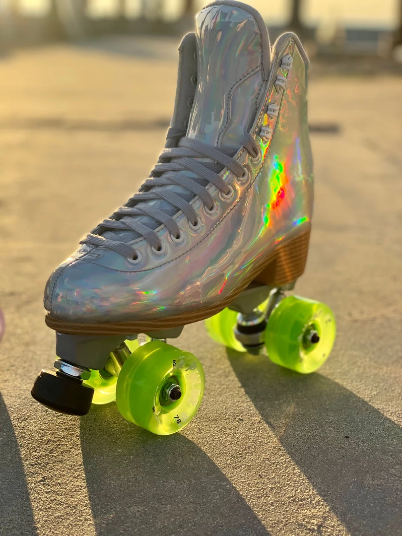 More than just a pretty face, the EVO talks the talk and skates the skate. This boot is built with the strong Jackson fundamentals and quality that defines all of their product lines. This LE Hologram Evo has the Antique Tan Sole. The boot sits on our Pilot Viper 2.0 plate, made with Zytel Nylon, and sports Atom’s signature 16-degree trucks. It’s responsive, strong and lightweight! Born to party outside, or boogie on the dance floor, EVO will get you where you need to go. Where there’s a will, there’s a way – Roll Your Way!