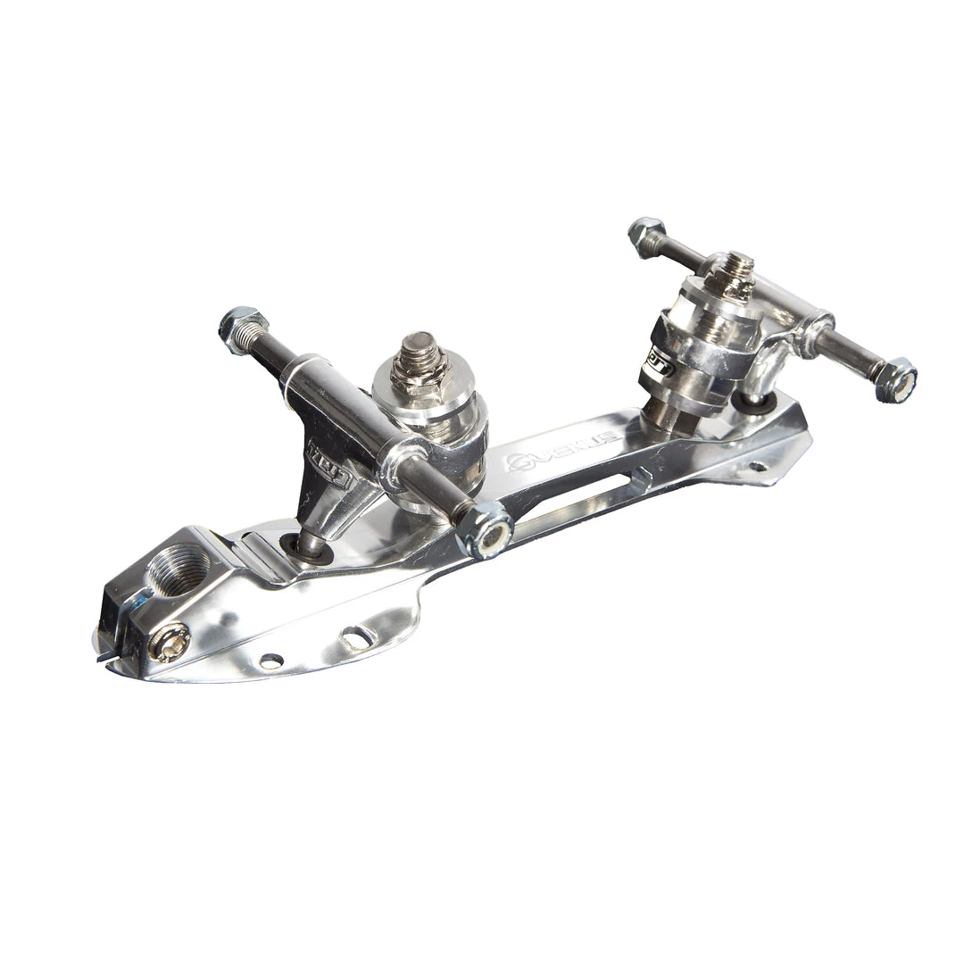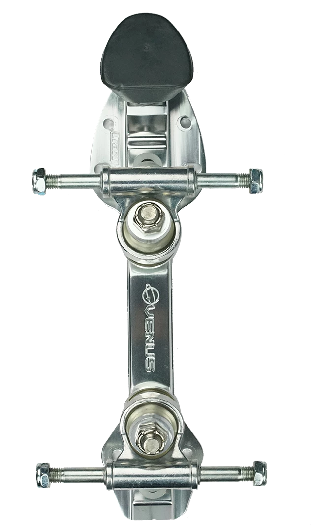 The CRAZY Skates VENUS is a professional plate crated from a lightweight extruded and tempered Aircraft Aluminum, completely CNC machined to create the defining lines that make this plate stand out from the crowd! The VENUS features a very articulate 20 degree action, allen screw adjustable toe stop, delrin pivot cup inserts and aluminum trucks with hardened steel pivot pins. Sold as a set.