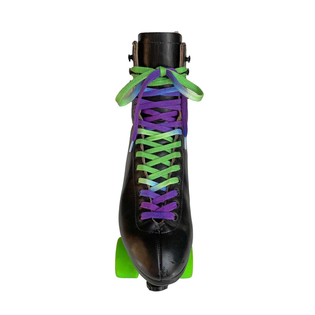Whether you love monsters like Frankenstein, creepy movies like Beetlejuice, or the vivid combo of purple and lime green, these laces are sure to turn heads. They are hand dyed to color block up your skates, alternating colors as you go! Designed for Halloween, but a strong contender for a year-round style. We shall see!