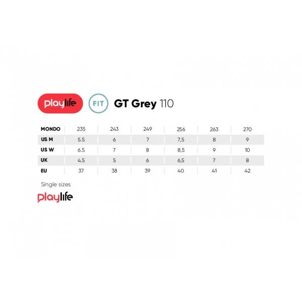 Skates for everybody! The Playlife GT 110 fitness inline skates follow the guidelines of our Playlife line: the very best quality at an unmatched price point, making recreational inline skating affordable for the masses. The GT 110 soft boot skates come equipped with dual density padding to provide lots of comfort. The skates are light weight and supportive by added velcro straps and extra eyelets, making skating fun for beginners, intermediate and advanced skaters. Three fast 110mm PU-wheels combined with long lasting Wicked bearings will make you roll fast. The frame is a 3D embossed strong and supportive aluminum frame which provides excellent power transfer. The standard heel brake helps you stop on point for maximum safety.