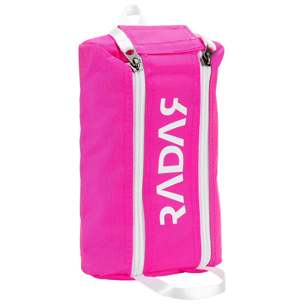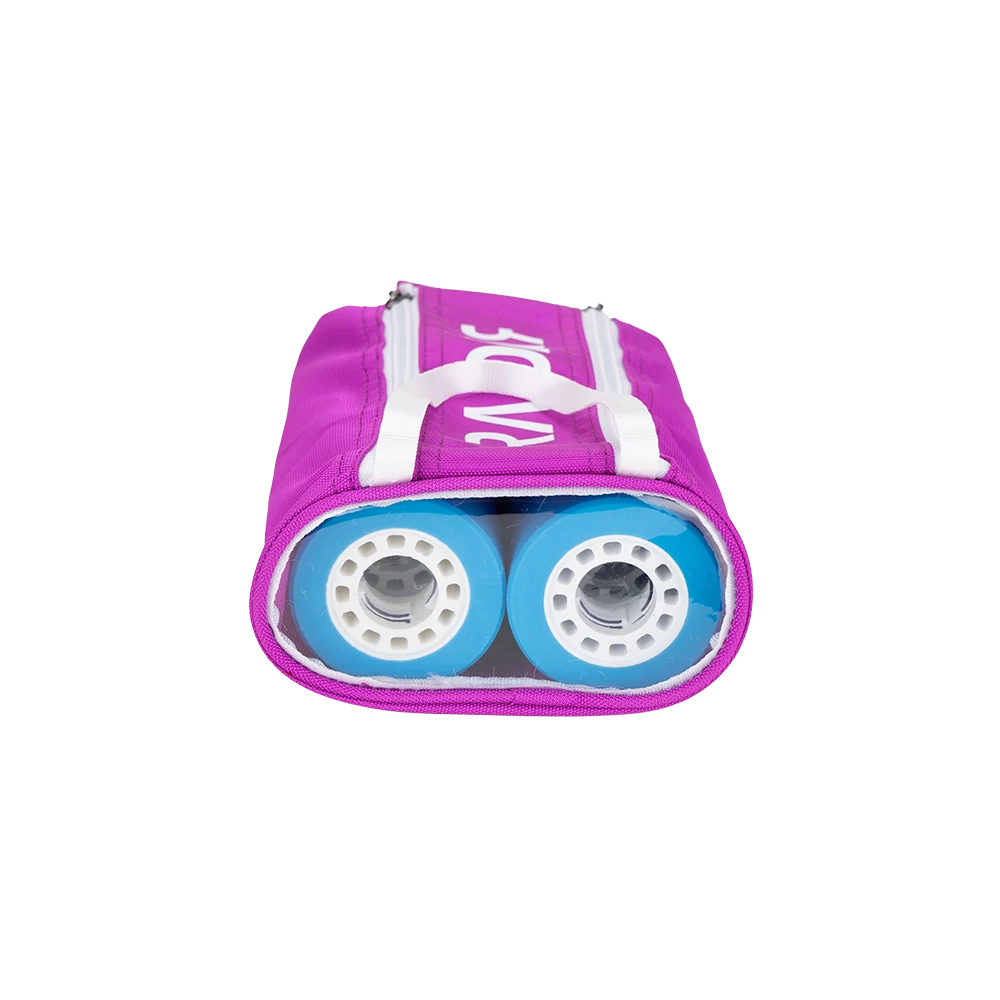 The Radar Wheelie Bag is perfect for storing and organizing your extra wheels. Double handle / double zipper design makes the bag easy to carry, load and unload. The clear panel on the end makes it easy to see what wheels you have in the bag. The Wheelie Bag can hold up to eight roller skate wheels.