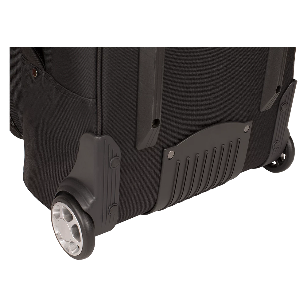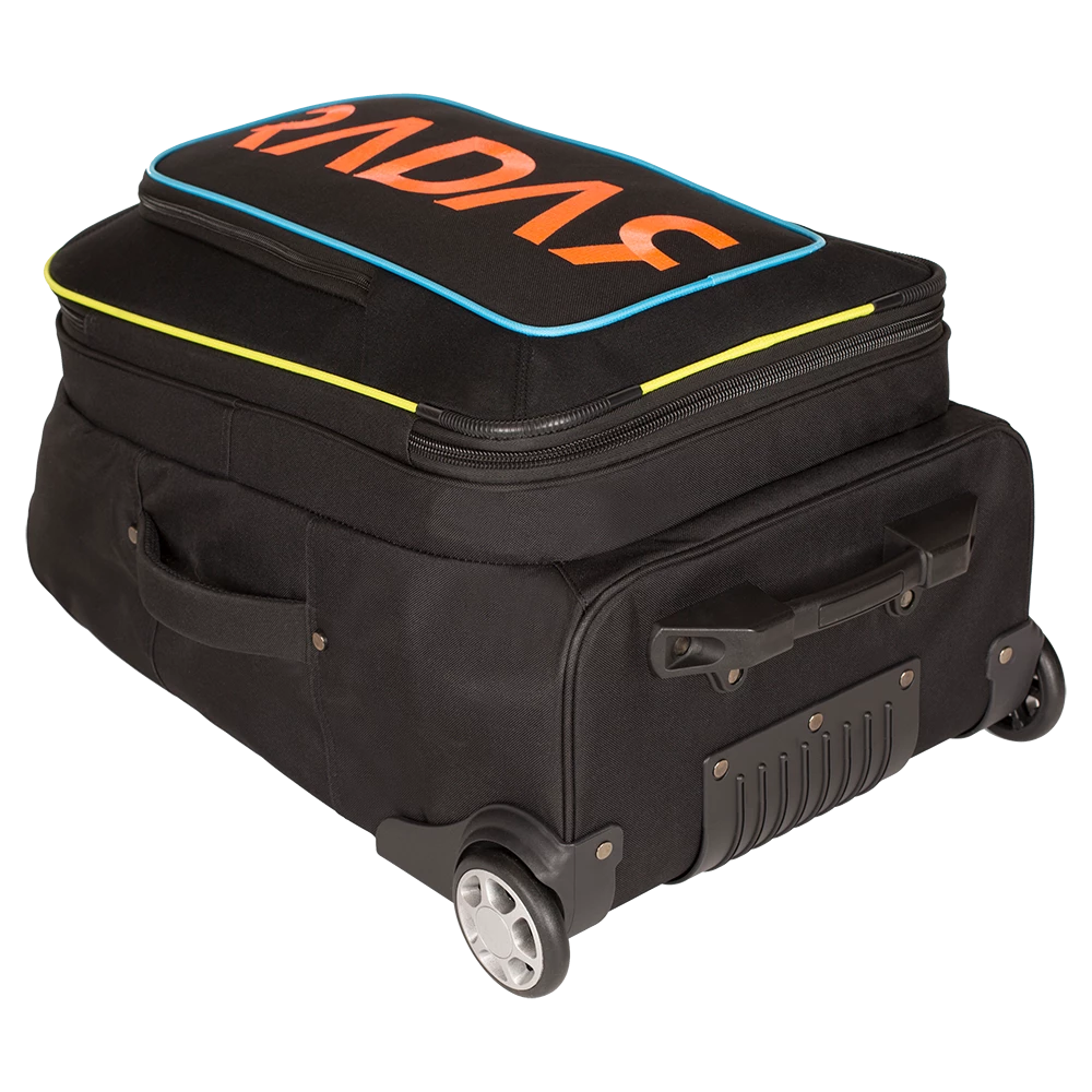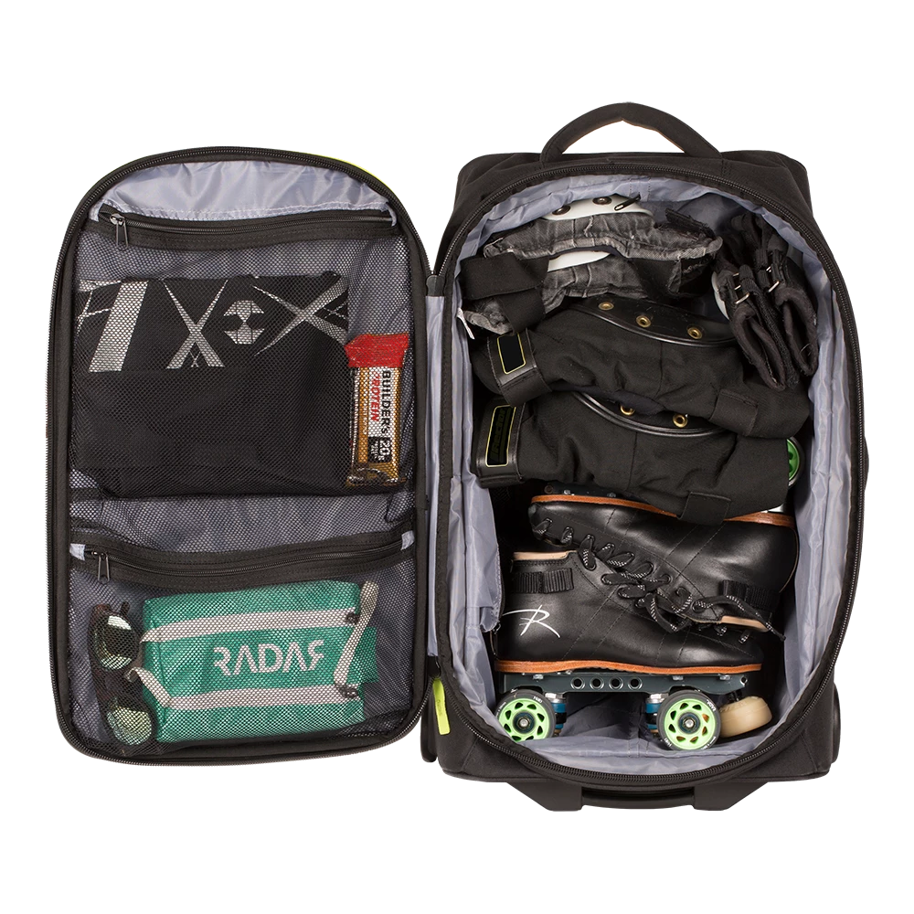 The Radar Rolling Gear Bag is perfect for transporting all of your gear to practice or to your next tournament. Easily holds skates, pads, helmet and lots of extras, with sporty embroidered logo. Durable base plate and rails protect the bottom and back of the bag.