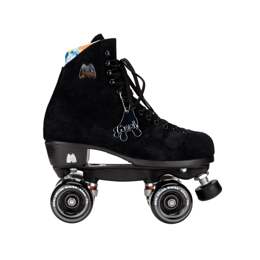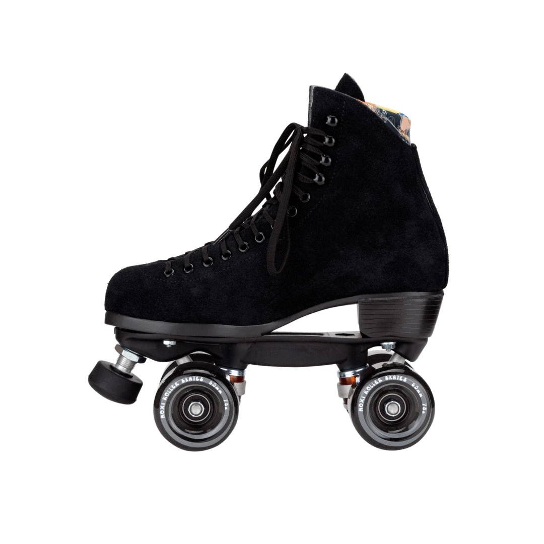 Classic Black suede high-top roller skates can be used for indoor or outdoor skating. Moxi Lolly Classic Black Skates are a mid-range lifestyle skate, designed for recreation and street skating. The soft leather boot breaks in quickly with minimal discomfort and forms to your foot more than less expensive synthetic skate boots.