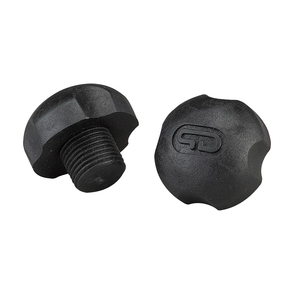 The PowerDyne Jam Plugs are a 5/8” black rubber plug for jam and rhythm skating. The Jam Plugs fit most industry standard plates with adjustable toe stops.